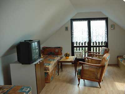 V přízemí se nachází 1 dvoulůžkový pokoj, v poschodí - 2x apartmán se 4 lůžky.