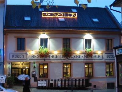 Pension Černý orel je ve spodní části náměstí ve Kdyni hned vedle spořitelny,na hlavním tahu mezi Klatovy a Domažlicemi.