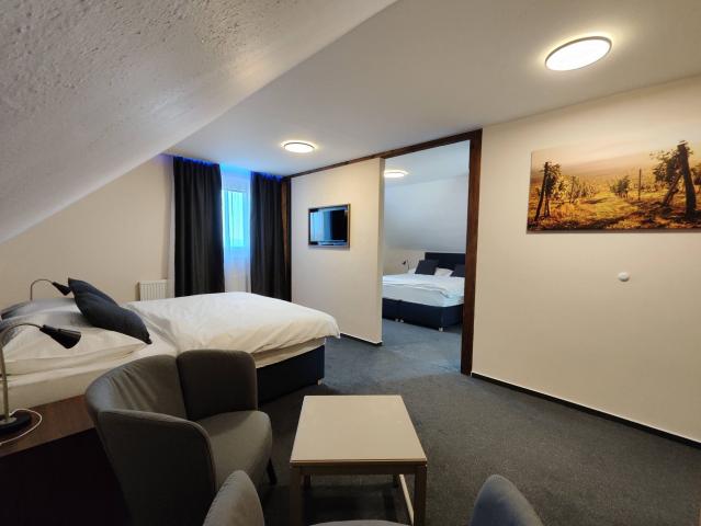 Máme dva samostatné penziony které obsahují 23 pokojů z nichž jeden stojí nad vinným sklepem, kde můžete zajít na dobrou a vyhlášenou kuchyni naší rodiny.