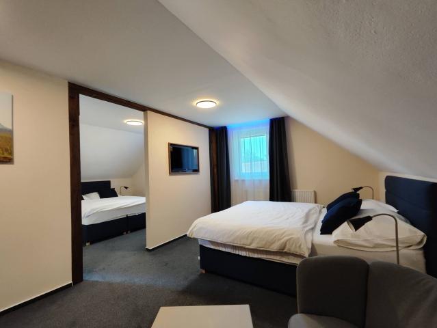 Máme pokoje od dvou lůžek až tří lůžek, přes čtyřlůžka až po velice příjemně řešené apartmány, které jsou vybaveny ledničkou a kuchyňkou.