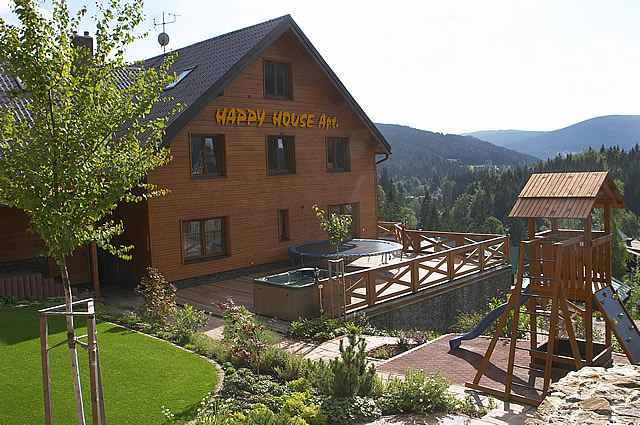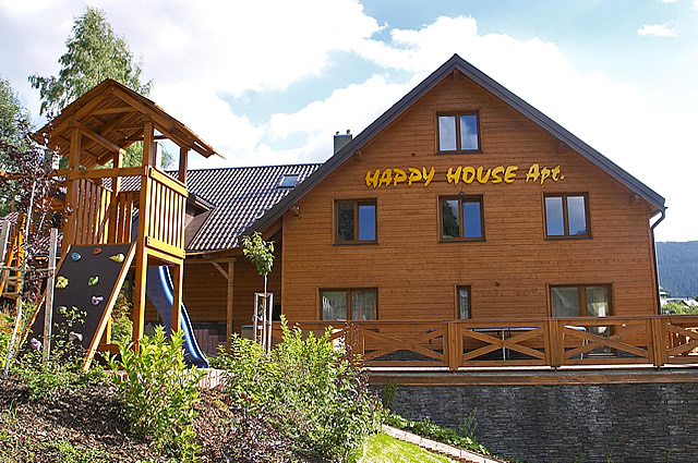 Apartmány HAPPY HOUSE nabízejí stylové a komfortní ubytování v Krkonoších, v klidné části Špindlerova Mlýna, nedaleko dolní stanice sedačkové lanovky na Medvědín, s výhledem na sjezdovky na Medvědíně a ve Svatém Petru.