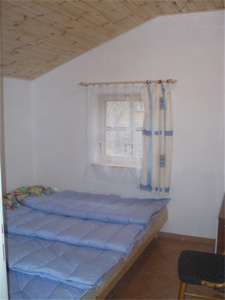 V přízemní části domu je větší čtyř lůžkový pokoj, koupelna se sprchovým koutem, samostatné WC a prostor pro odkládání lyží. V podkroví jsou tří a čtyř lůžkové pokoje. Ve střešní části domu je vybudovaný obytný prostor ke spaní (mezanin).