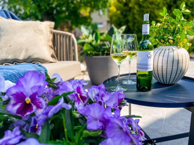 To vše si můžete vychutnat uprostřed zahrady plné slunce a klidu a jen tak bez povinností si posedět se sklenicí vína pod nebem plném hvězd.