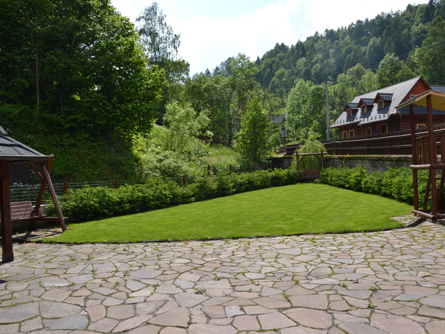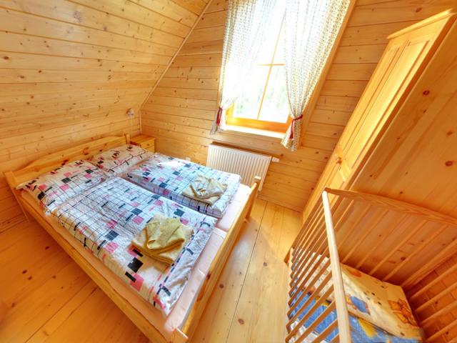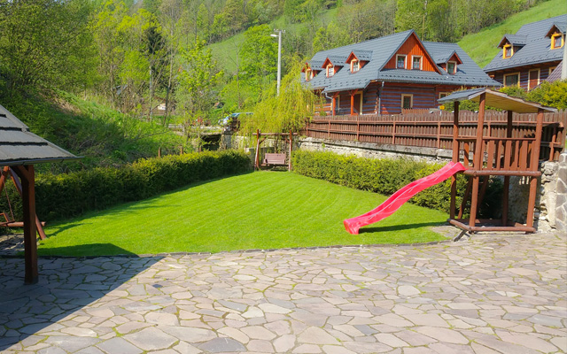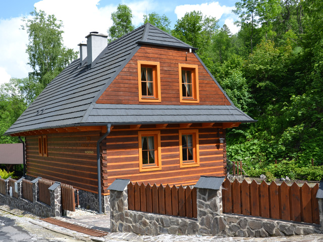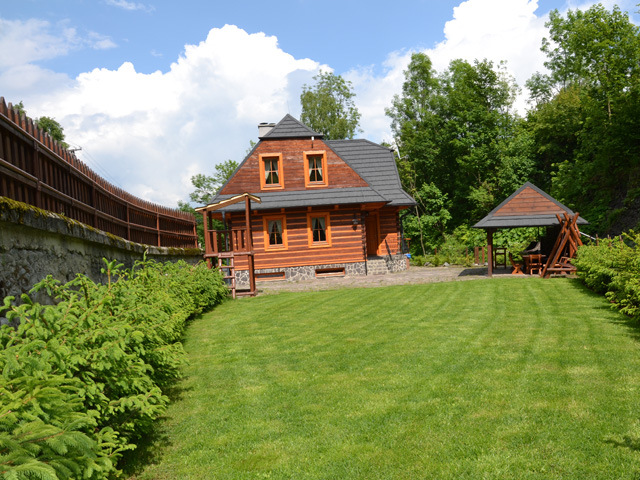 V nádherném areáli chaty najdete také dřěvené houpačky a skuzavku, která potěší naše nejmenší návštevníky. Celý areál je oplocen.