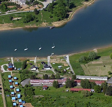 Rekreační zařízení Dobranská zátoka leží v tichém prostředí bezprostředně na břehu jezera. Od vodné hladiny ho dělí trávnatá pláž.