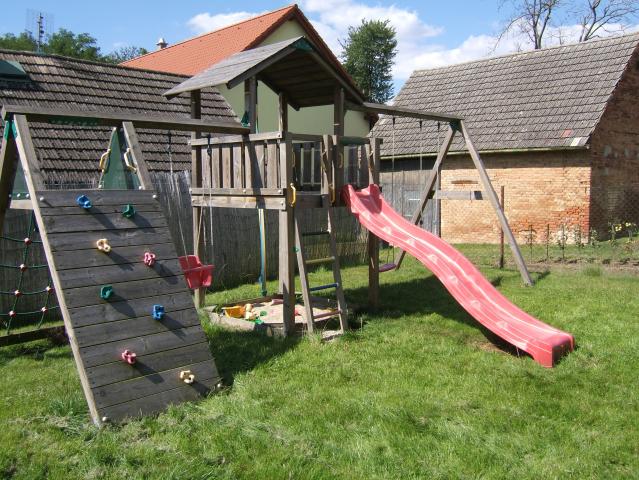 Posedět lze na zahradě, kde je možno nechat děti vyřádit na 4m trampolíně a na dětském hřišti Jungle Gym.