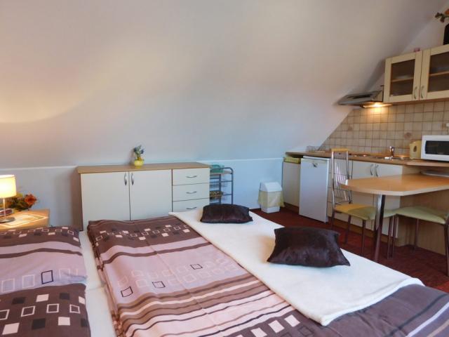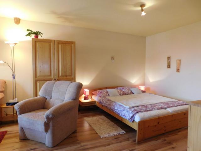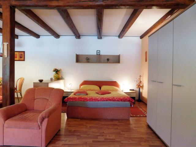 V útulně zařízených apartmánech a podkrovních studiích s výhledem do záhrady.