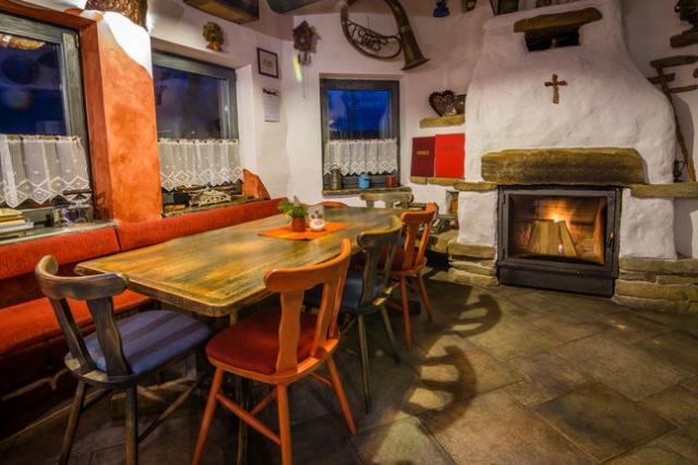 Miestne špeciality a jedlá medzinárodnej kuchyne si môžete vychutnať v štýlovej reštaurácii s krbom alebo na krytej terase s grilom.