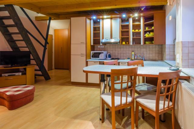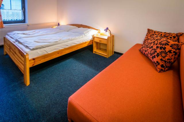 - priestranná dvojlôžková izba s možnosťou dvoch prísteliek a kuchynským kútikom, menšia dvojlôžková izba, 2 x TV-SAT, rádio, samostatná kúpeľňa so sprchou