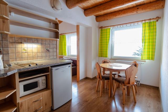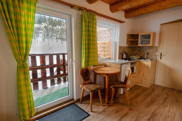 V Penzionu Malá Fatra je v nabídce 12 jednopokojových apartmánů s kuchyňkami soc. zaříz. ve složení