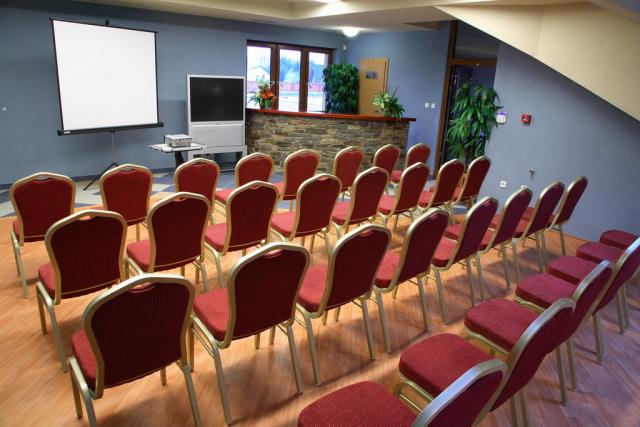 • data projektor, TV, DVD prehrávač, simultánní tlumočení (na požádání), flipchart, meotar, promítací plátno (i přenosné), laserové ukazovátko, zatemnění místností