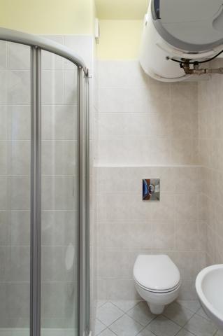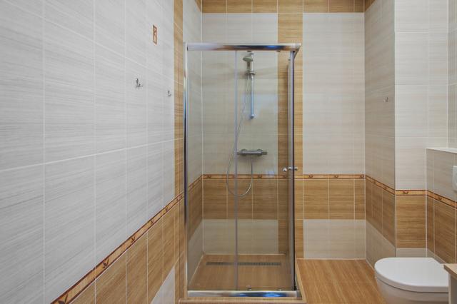 Koupelny mají sprchové kouty, umyvadla se zrcadlem a WC, u vybraných apartmánů s podlahovým vytápěním.