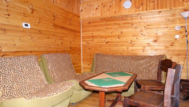 1) obývací místnost - gauč s křesly a obývacím stolkem, satelit, televize, lampa, přímí vstup na terasu a dvorek s posezením.
