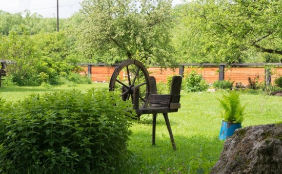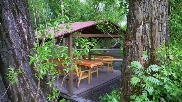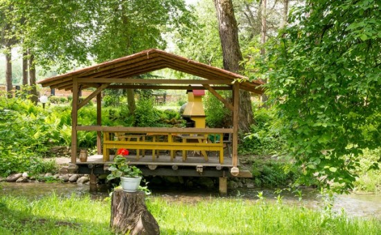Velká záhrada s tečúcim potokom Lupčianka, posedenie pri ohni s možnostou opekania, zahradný krb.