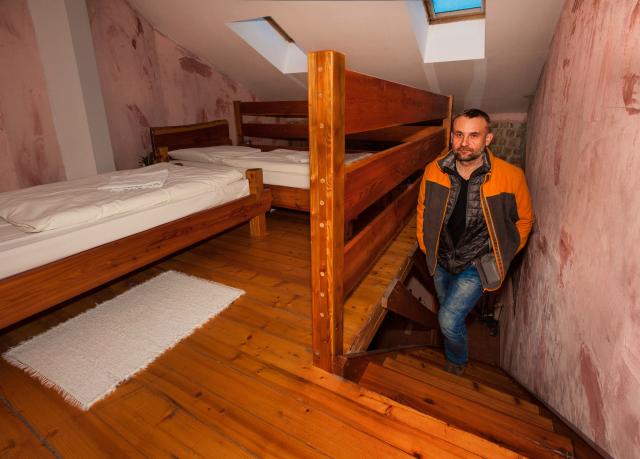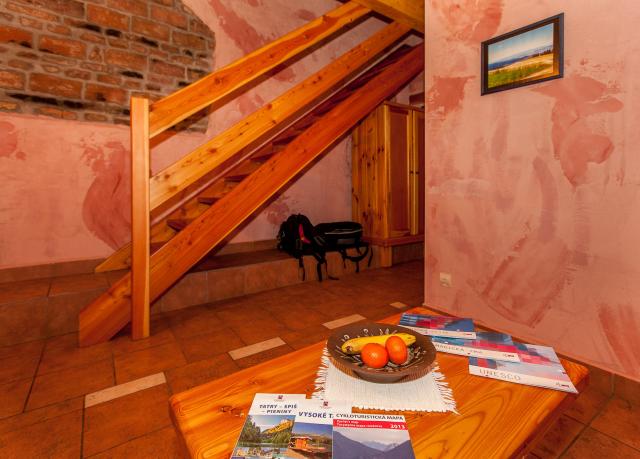 Hosťom na výber ponúkame dve varianty obytného priestoru. Záleží len na vás, či si trúfnete nocovať na vyvýšenej drevenej podeste, vedie na ňu interiérové schodisko, alebo uprednostníte skôr klasiku.