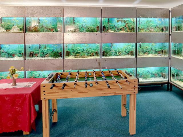 Součástí vinného sklepa je též společenská místnost, kde mohou hosté posedět u kávy, vína či piva, zahrát si šipky či sledovat sportovní zápasy na velké televizi, případně i zatancovat.