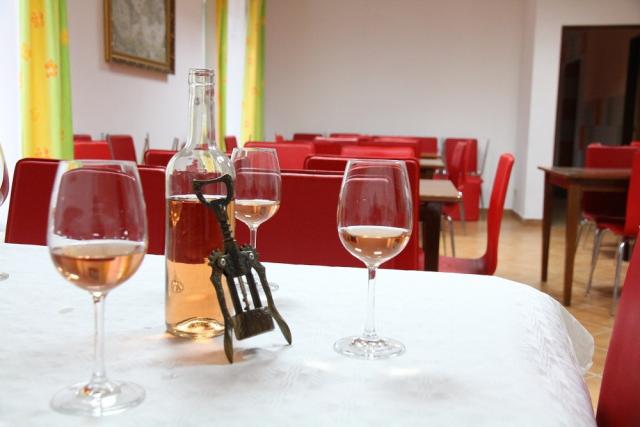 20 míst v salónku se stylovou vinotékou a nabídkou z vlastní produkce vín.