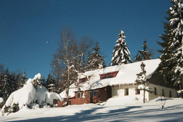 2 apartmány i s oddělenou ložnicí a obývacím pokojem, 1 s krbem) na krásném místě, 100 metrů, příp. 400 metrů od začátku značených turistických a cykloturistických tras (v zimě 500 metrů od lyžařských vleků a 100 metrů od začátku značených běžkařských tras).