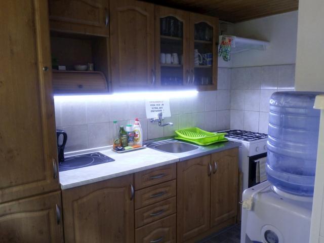 Kuchyňa, umiestnená hneď vedľa, je vybavená: