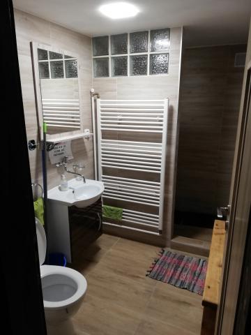Súčasťou prízemia je aj kúpeľňa so sprchovým kútom a toaletou.