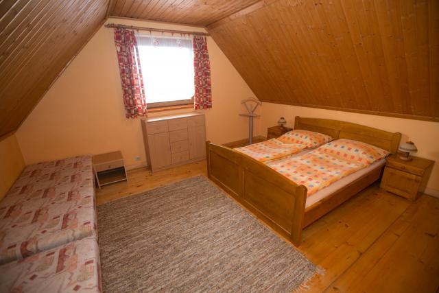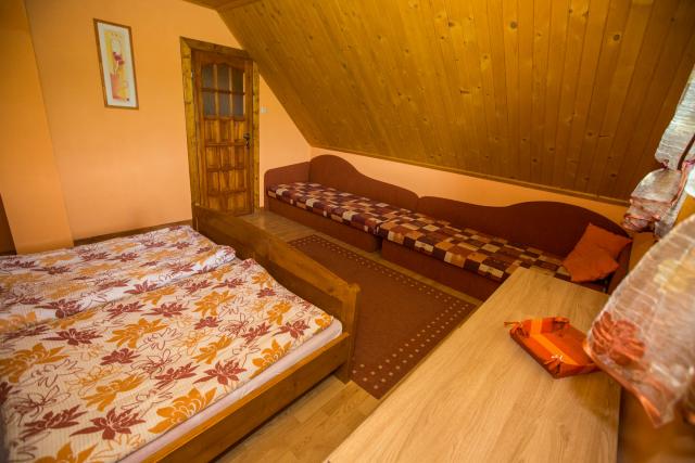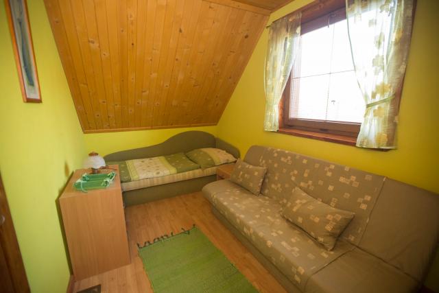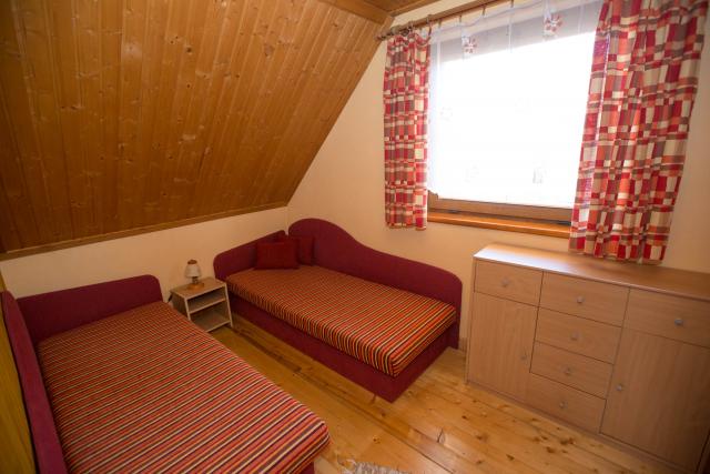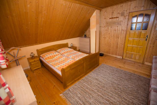 Spálne sú situované na poschodí každej chaty a to v rozdelení jedna štvorlôžková a jedna dvojlôžková izba.