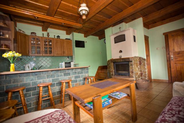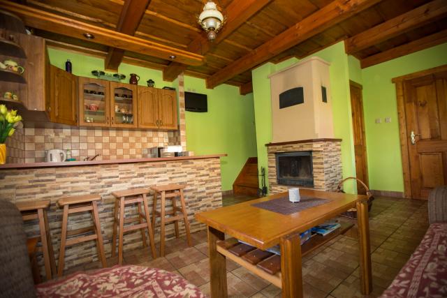 Na prízemí chát je pre vás pripravená spoločenská miestnosť, ku ktorej patrí krb, televízor so satelitným príjmom a barovým pultom. ¨
