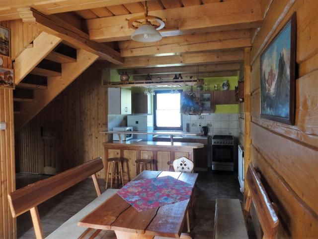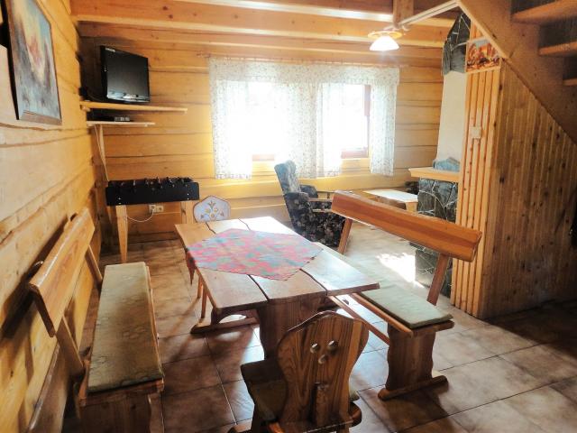 Chata má k dispozícii veľkú spoločenskú miestnosť s vybaveným kuchynským kútom.
