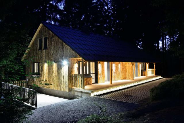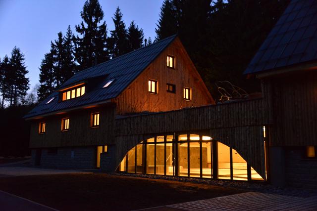 Maximální soukromí v apartmánech F zajišťuje důmyslné umístění objektu ve vzrostlém smrkovém lese...