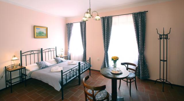 samostatné sociální zázemí (koupelna se sprchovým koutem, vanou, WC), minibarem, TV, WiFi připojení internetu ve všech pokojích a v restauraci.