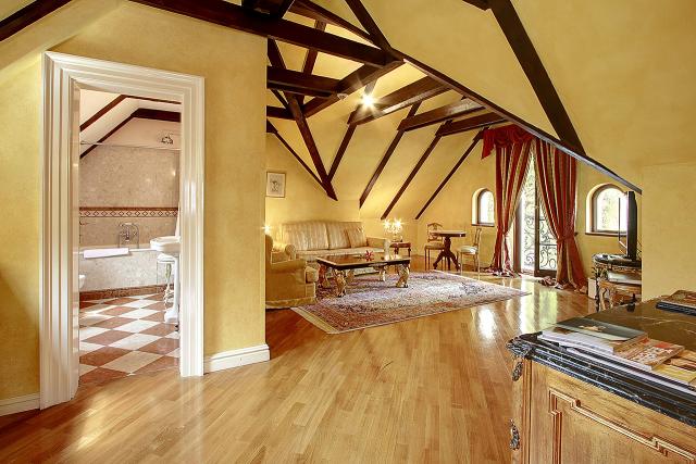 Prostorné mramorové koupelny disponují luxusní dešťovou sprchou, bidetem a WC.