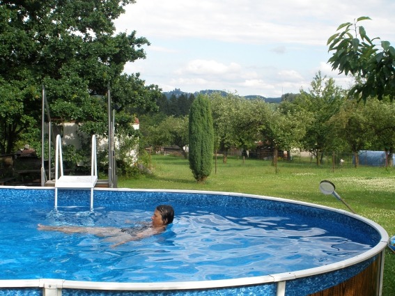 V zahradě mohou hosté užívat bazén – ovál o rozměrech 7,5 x 3,6 m. Hloubka je 1,2 m.