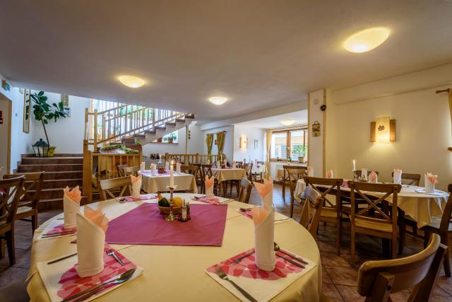 Dolná reštaurácia má kapacitu 50 osôb a je k dispozícii predovšetkým pre našich hotelových hostí. V tejto reštaurácii podávame večere a raňajky formou bufetu. V reštaurácii je aj detský kútik.