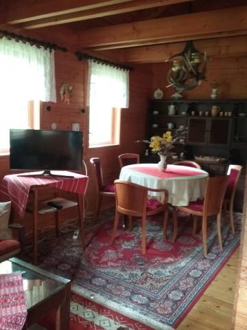 Horná časť chaty má na prízemí spoločenskú miestnosť