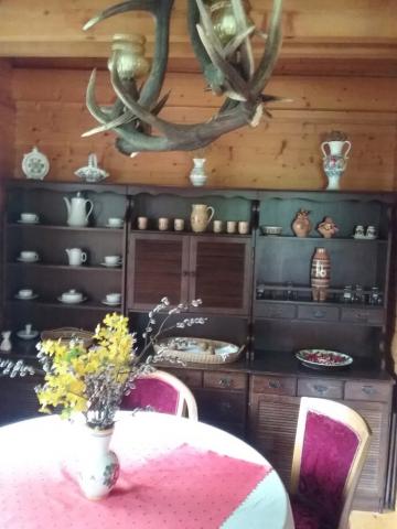 Tá je prepojená s kompletne zariadenou kuchyňou (šporák na tuhé palivo, dvojplatnička, chladnička s mrazničkou, mikrovlnná rúra, kávovar, varná kanvica, hriankovač) s jedálenským posedením.