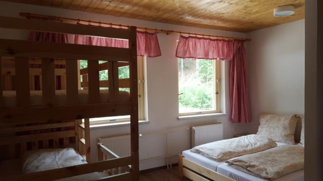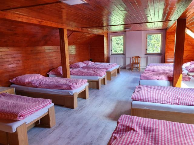 Pokoje jsou 10-ti lůžkové a jsou vybaveny původním nábytkem z 90.let. Kromě postelí, jsou zde šatní skříně, noční stolky a lampičky na čtení.