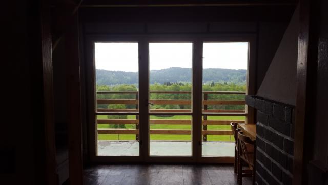 Chatka má velký balkón s výhledem do údolí..