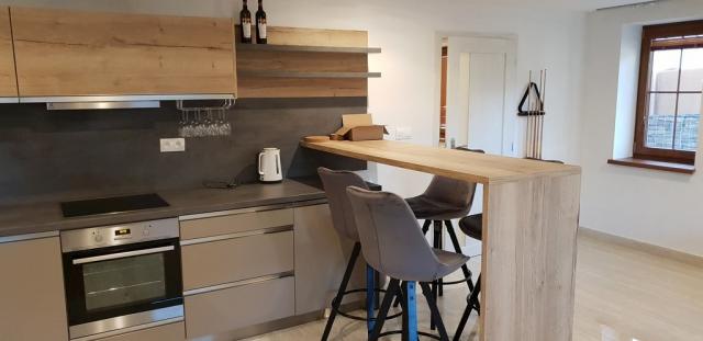 Vybavení: Lednička, Keramická varná deska, Elektrická trouba, Mikrovlnná trouba, Rychlovarná konvice, Mrazák, Jídelní posezení, Myčka nádobí