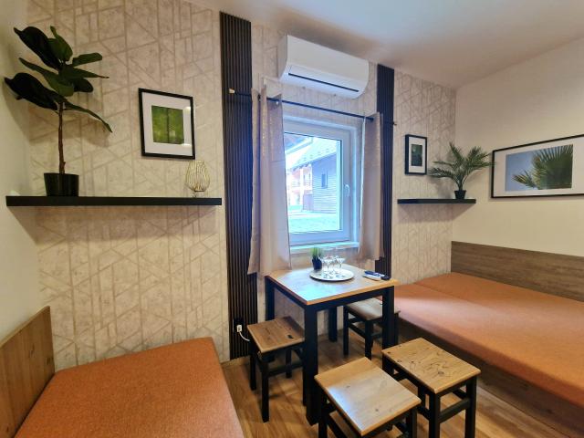 Príjemné ubytovanie v klimatizovanej chate, ktorú je možné vďaka dispozičnému riešeniu prenajať ako šesť samostatných štúdií s kapacitou 4 dospelé osoby.