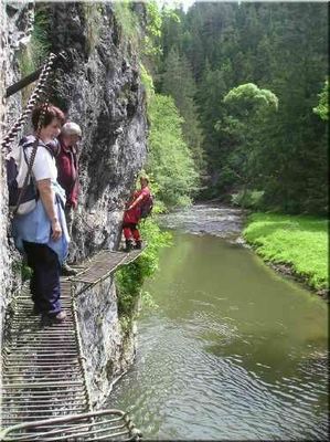 - průchod několika krátkými úseky se stupačkami a po stezce vysoko ve srázu nad Hornádem